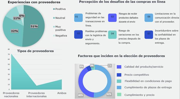 Figura 1. Dashboard - Resultados de la percepción de proveedores y plataformas de comercio electrónico.