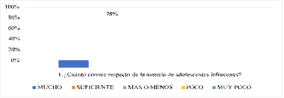 Los datos proporcionados en la figura 1 revelan que la mayoría de los encuestados tiene un conocimiento considerable sobre el tema de los adolescentes infractores. Según la gráfica 1, los datos sugieren que la población encuestada está bien informada sobre la materia de adolescentes infractores, con un 90% de las respuestas indicando un conocimiento entre "mucho" y "suficiente".