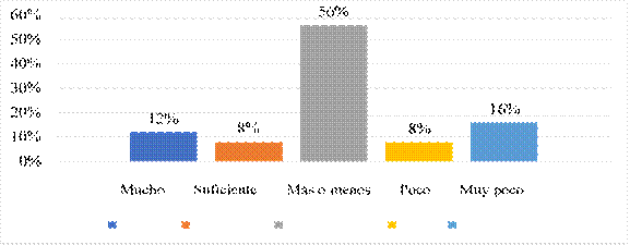 Se observa en la gráfica 4, que un 56% de los encuestados manifiestan que conocen algo de este contexto, mientras que un 16% conoce muy poco y un 12% conoce mucho.