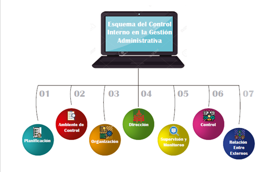 Son parte del control interno, el ambiente de control, el análisis de posibles problemas que puedan presentarse, los mecanismos utilizados para el control, así como los sistemas informáticos de comunicación y seguimiento. El control interno está orientado a cumplir con la normativa vigente, así como a promover eficiencia garantizando de esta manera la veracidad y oportunidad de la información, en base de ello, tomar los correctivos pertinentes que se presenten en la gestión administrativa (Celi de la Torre, 2019).