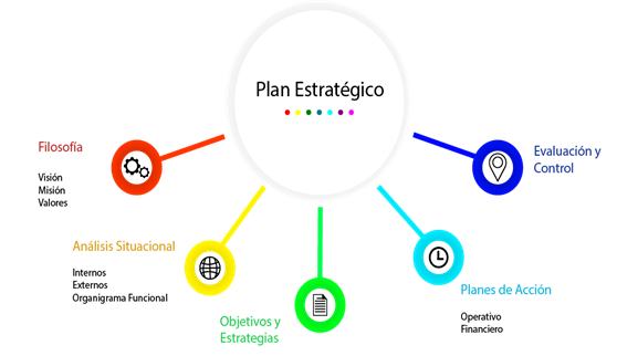 El plan estratégico, define las estrategias empleadas por la empresa, basadas generalmente en los factores internos, para distinguir que se quiere lograr a futuro, fijando una serie de objetivos y metas, empleando estrategias adecuadas para alcanzarlos, permitiendo que todas las actividades, se realicen uniformemente y se complementen una con la otra. Asimismo, se puede implementar un plan de acción que consiga los objetivos trazados por las organizaciones, sin dejar de lado a los factores externo, quien causara una serie de amenazas y oportunidades en la vida empresarial.