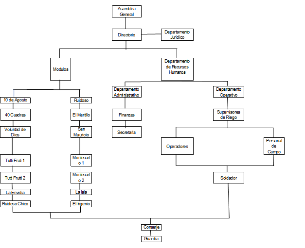 La junta de riego y drenaje "Manuel de J. Calle", es una institución muy bien constituida, dividida en departamentos administrativos, operativos, directivos, recursos humanos, se cambió la razón social por ese motivo carece de un plan estratégico.