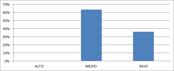 Con los resultados obtenidos se determina que, en cuanto al conocimiento en materia de contratación pública respondieron el rango de BAJO el 36,36%, mientras que MEDIO se verifica que asciende a 63,64%, y ALTO nadie asigno un puntaje.