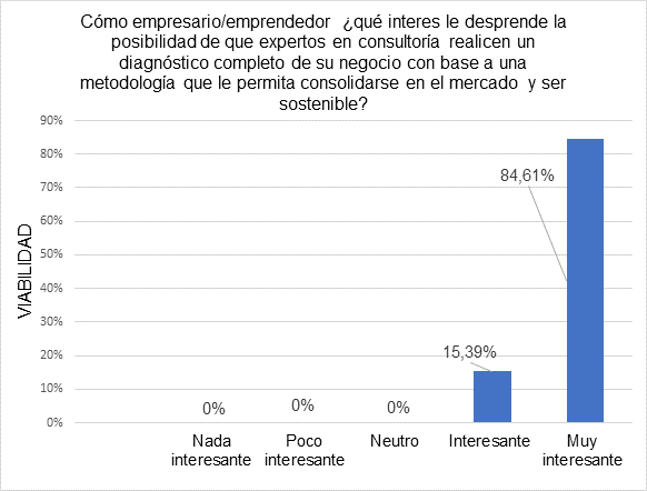 Como empresario/emprendedor ¿qué interés le desprende la posibilidad de que expertos en consultoría realicen un diagnóstico completo de su negocio con base a una metodología que le permita consolidarse en el mercado y ser sostenible? |